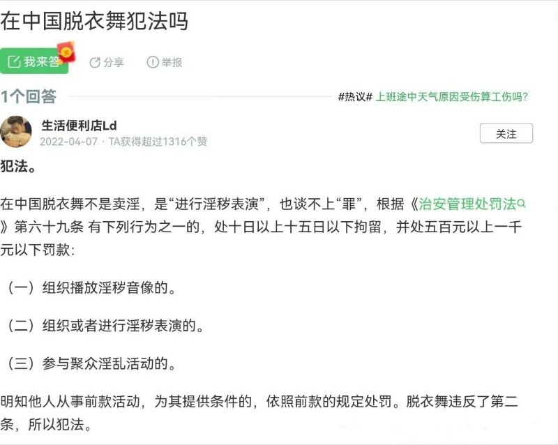 隨著央視刪除楊穎相關貼文,網友討論起脫衣舞算不算犯法?根據科普,在中國脫衣舞屬於犯法~