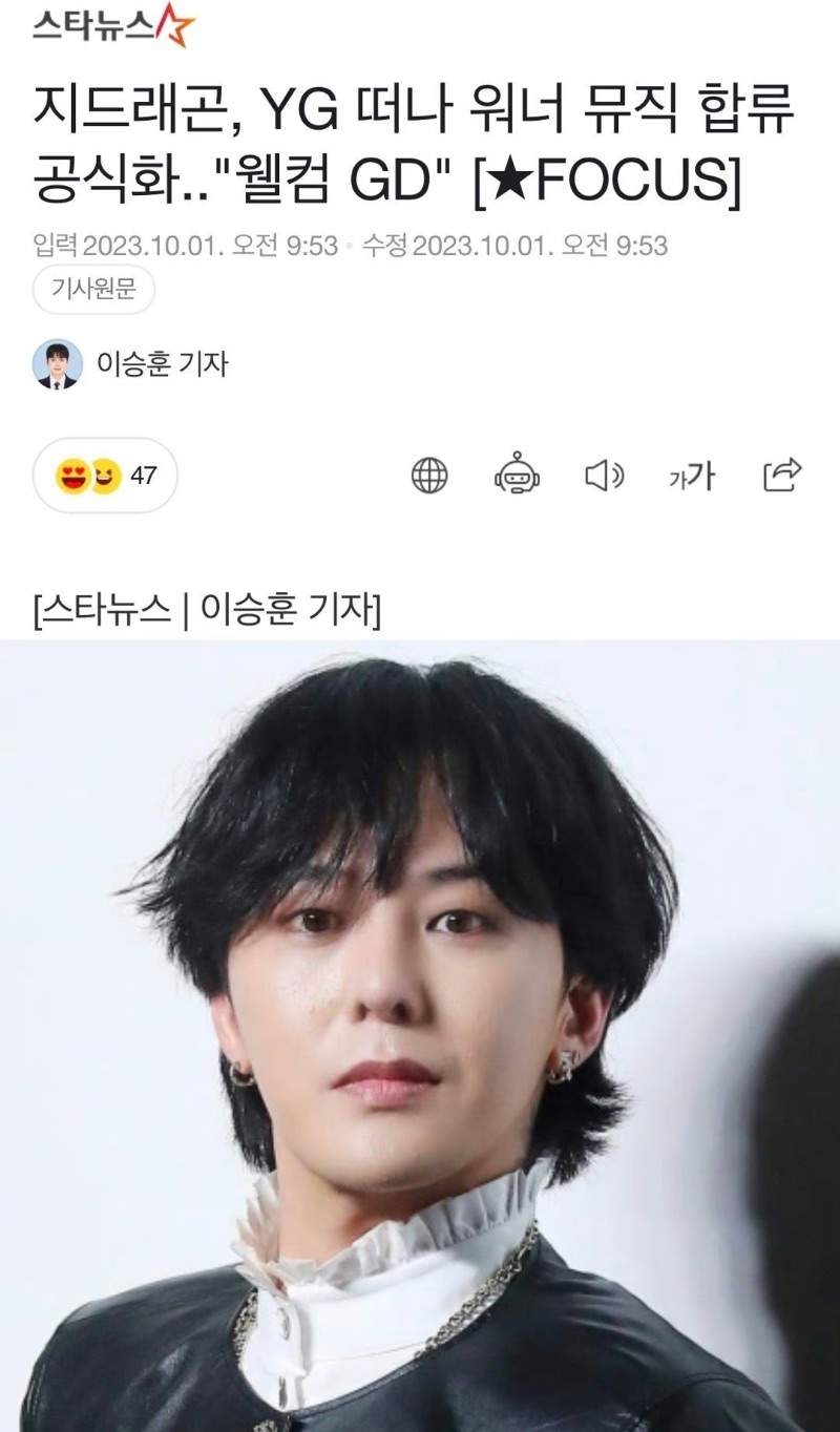 因此,韓媒報導表示G-Dragon正式告白YG,加入華納音樂了!事實上,G-DRAGON從今年年初就預告了個人回歸,曾在vlog中表示:「將透過多種多樣的活動與大家見面,專輯也在準備中。在新的一年裡,我想成為能夠帶來好消息的我。 」