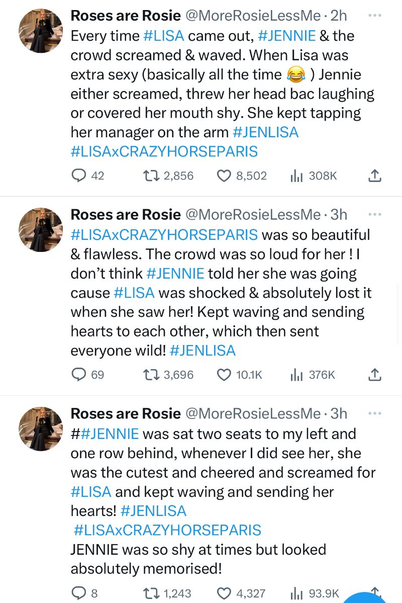 新聞:尺度公開!LISA瘋馬秀首秀後記!Rosé金智秀+緋聞男友都去了!隊友看秀反應全都有!