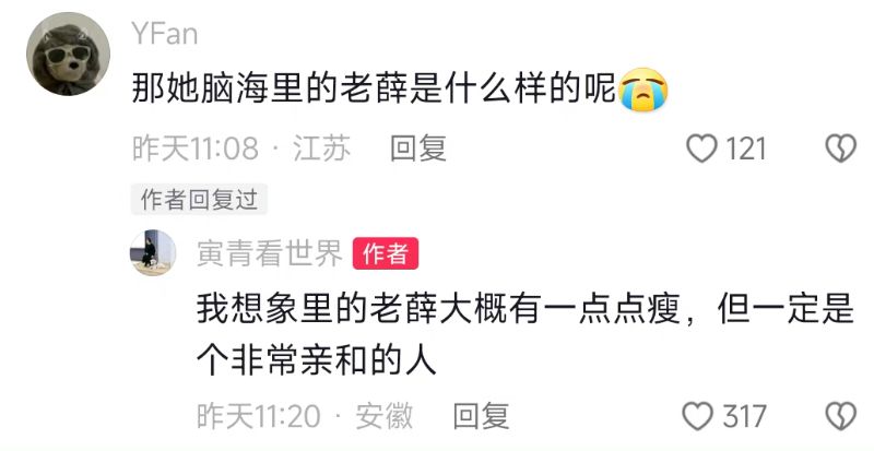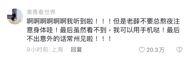 沒想到這位小姐姐也回應了,還不忘叮囑老薛不要總熬夜注意身體~