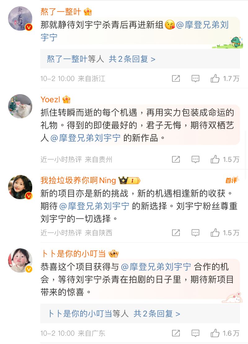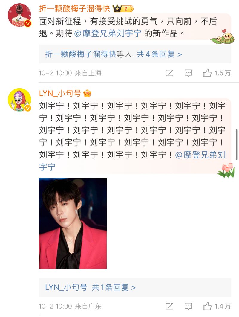 而在轉發區,劉宇寧的轉發熱度最高,唯一一個來自女方的轉發,居然還是趙露思本人👇