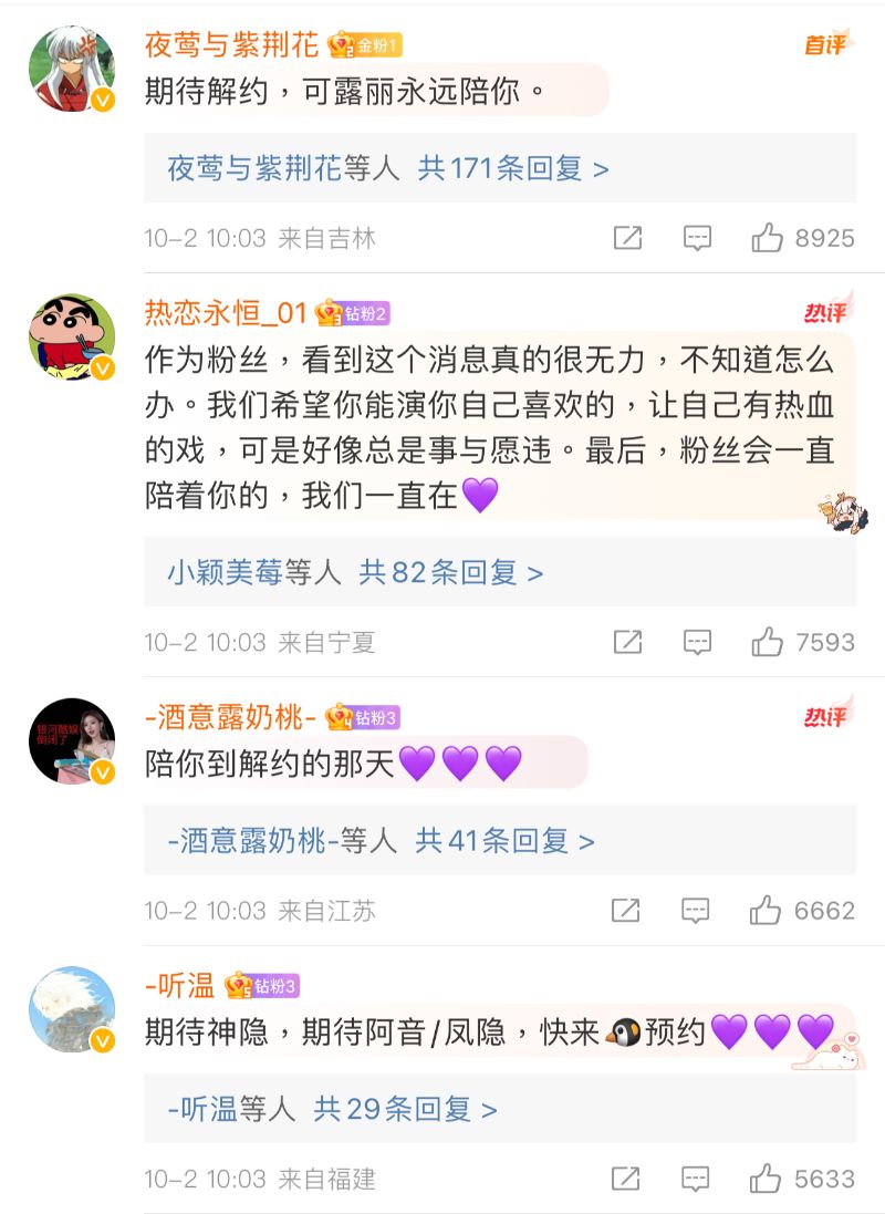 至於趙露思自己的微博下,評論區都在喊讓她解約,並且都在安利另一部趙露思出任大女主的《神隱》