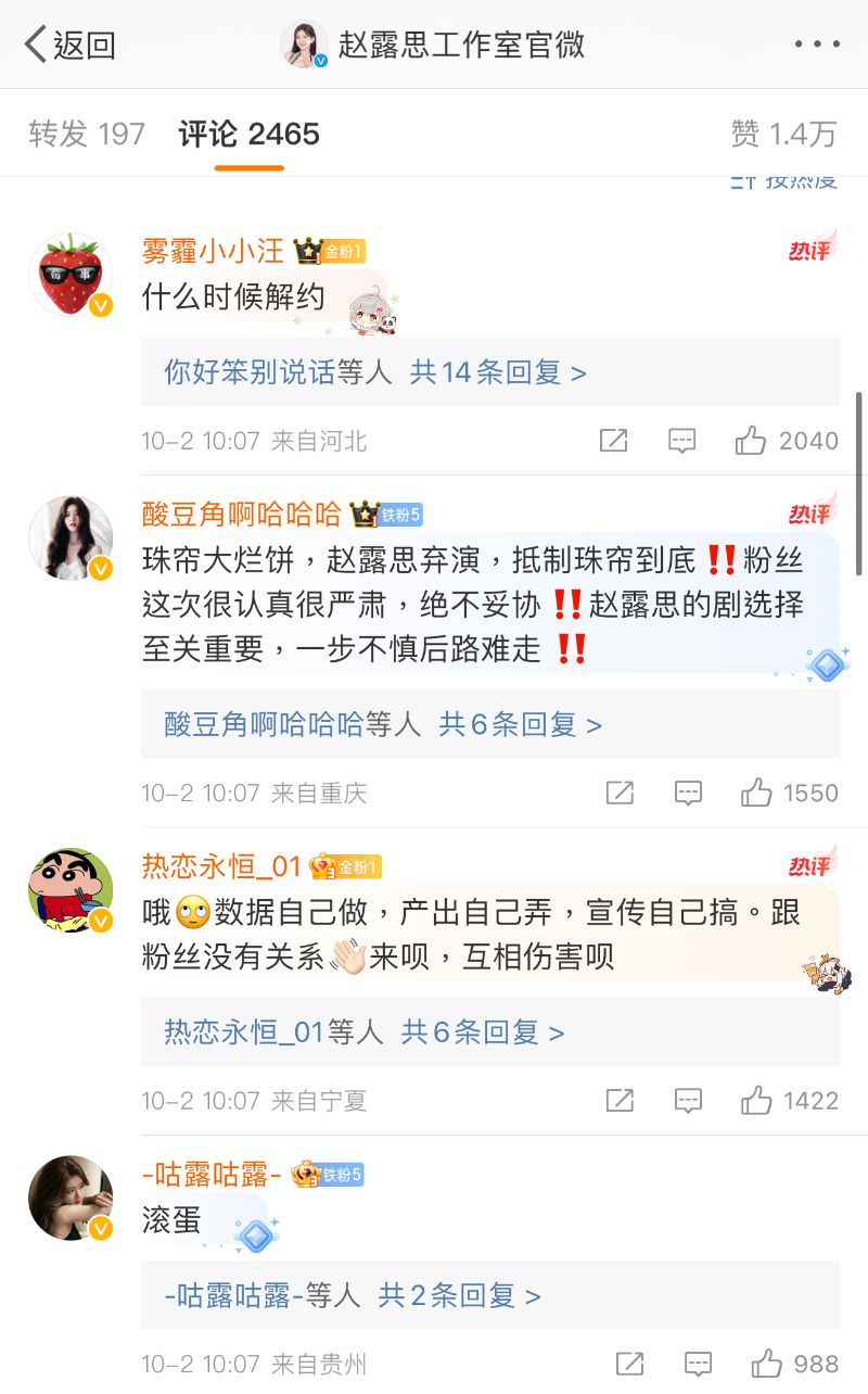 在趙露思工作室評論區,也是直接在開懟!