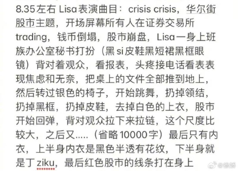 曾有現場觀眾用文字記錄了這段表演,結果被徐嬌轉發,表示「我只看到被性化的職業女性 」,引起爭議!