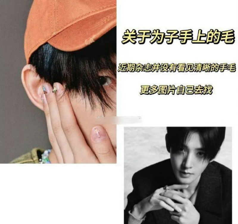 首先,有人認為鄧為的手上有手毛,但網友發了對比照,表示近期的雜誌照上,可以看見並沒有清晰的手毛👇