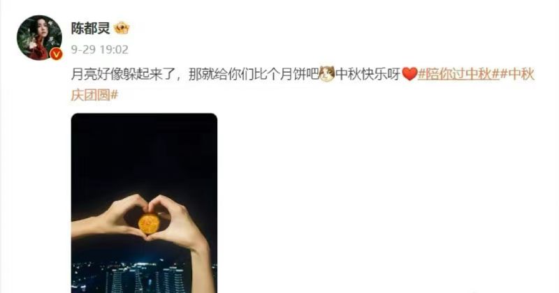 是噠,先來看看事情的起因,就是陳都靈發了照片慶祝中秋節👇