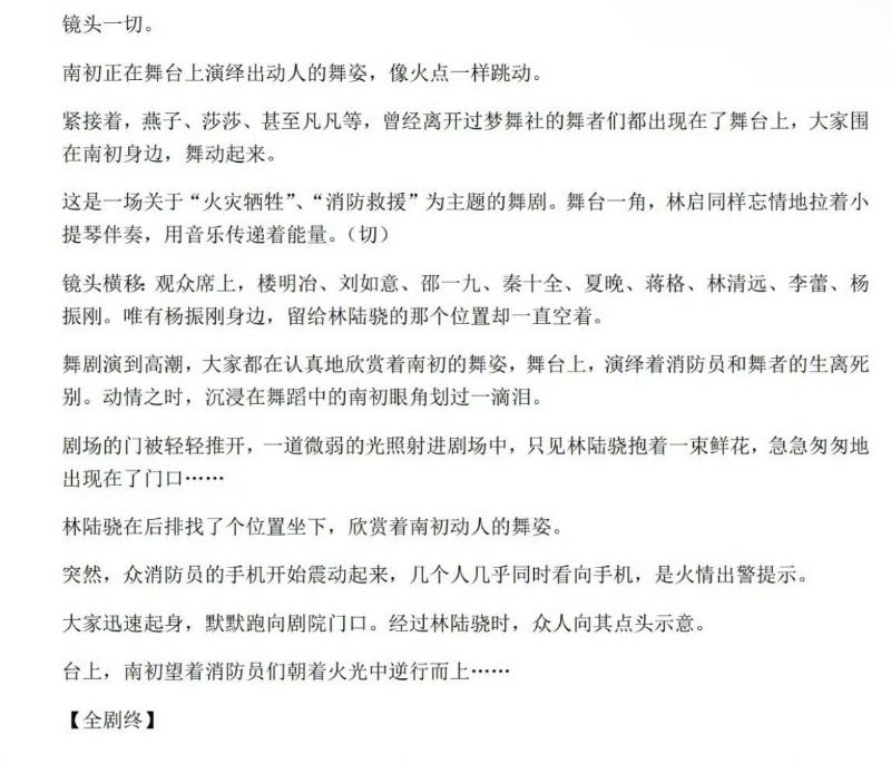 更有網友公開了結局劇本,寫到的是出任務的林陸驍遲到,所以觀眾席才空著👇