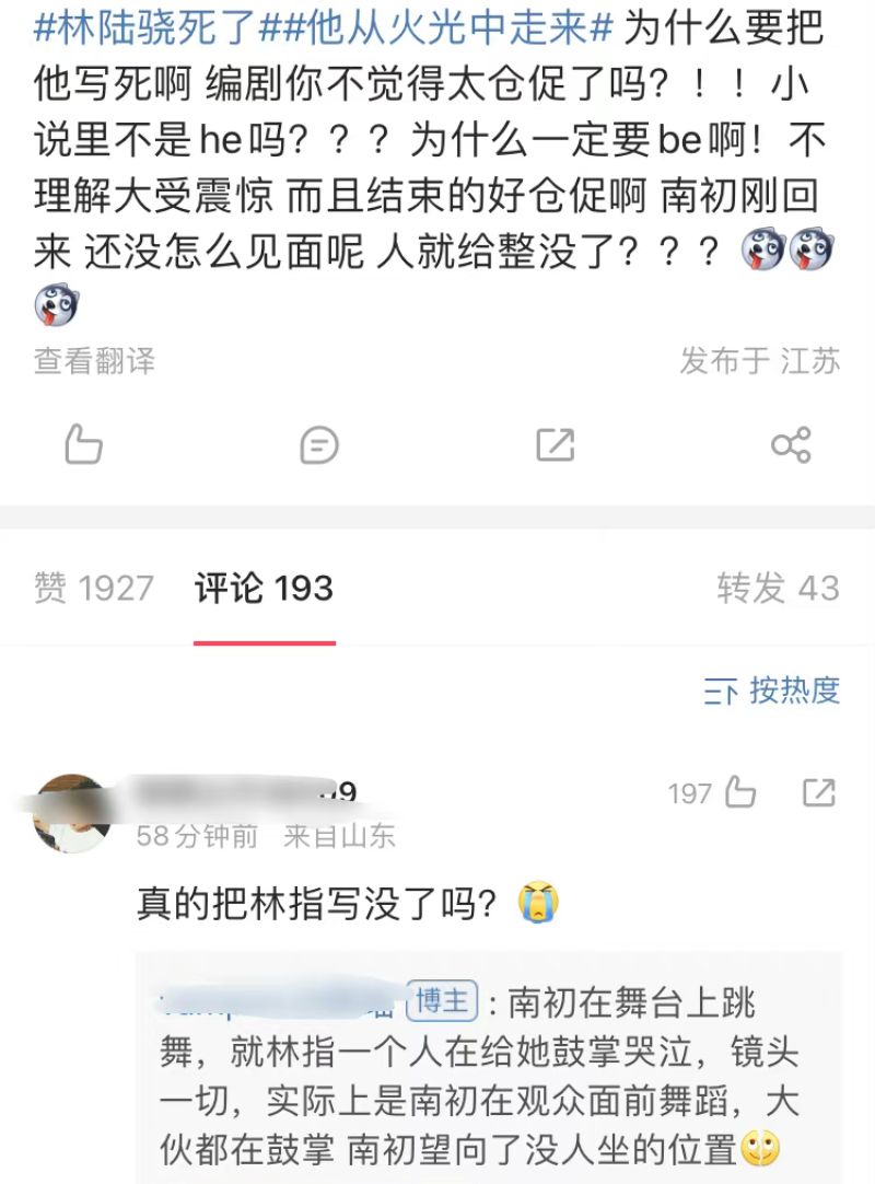 下一秒立刻64g在線闢謠:「我要闢謠,男主沒有死,這是一個開放性的結局!但是我不能死,我還要照顧南初,還有很多事情要做!!!」