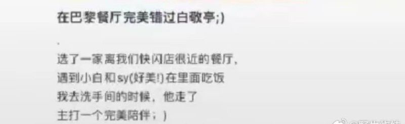 雖然但是,還是有雙方唯粉拒絕承認正主戀愛ing,結果…這不又有糖來了?是噠,有網友發文,表示自己在巴黎偶遇了白敬亭、宋軼,並曬出了一張小白背影照,旁邊坐著的是他好友👇