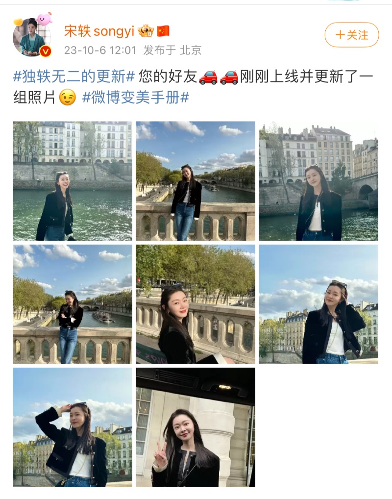 而宋軼近期的確發佈了一組在巴黎拍攝的寫真👇