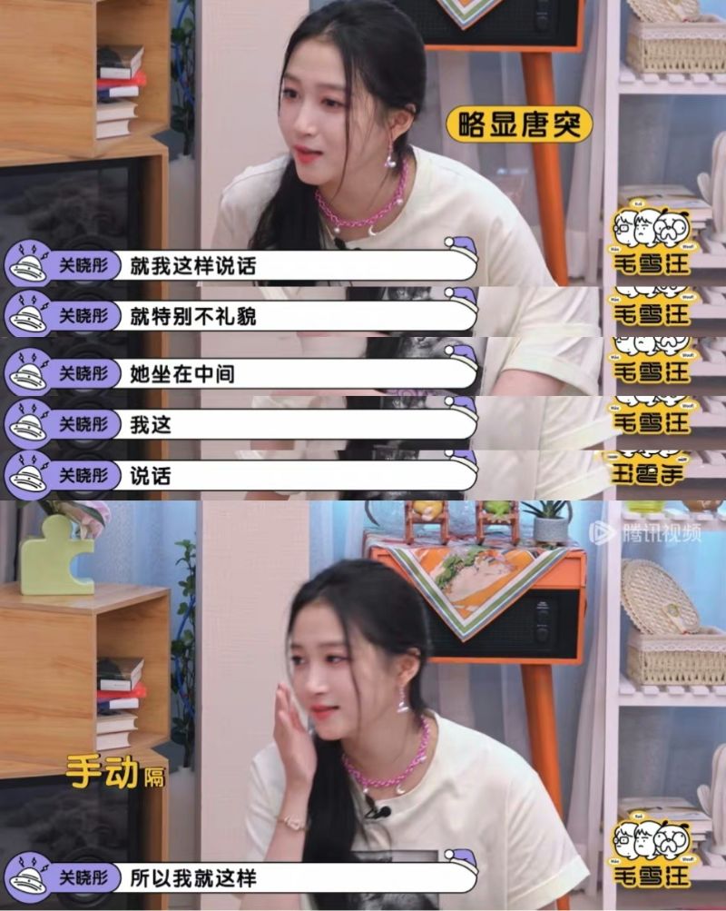 所以關曉彤認為如果不捂嘴說話,感覺特別不禮貌,於是才這樣捂嘴👇