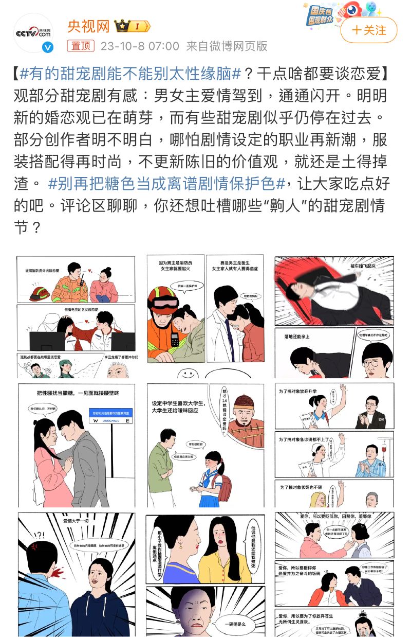 來看看,央視網發表了有關甜寵劇劇情太無腦,什麼都以愛情為主,陳舊的價值觀,也很離譜!