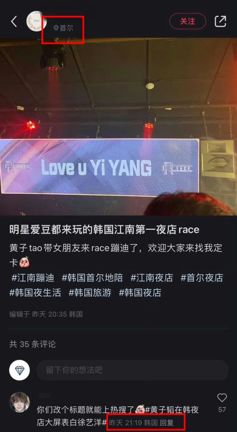 怎麼回事呢?原來有坐標在首爾的網友發文,表示黃子韜帶女友來韓國第一夜店(race)蹦迪,還準備了大屏幕告白啊!