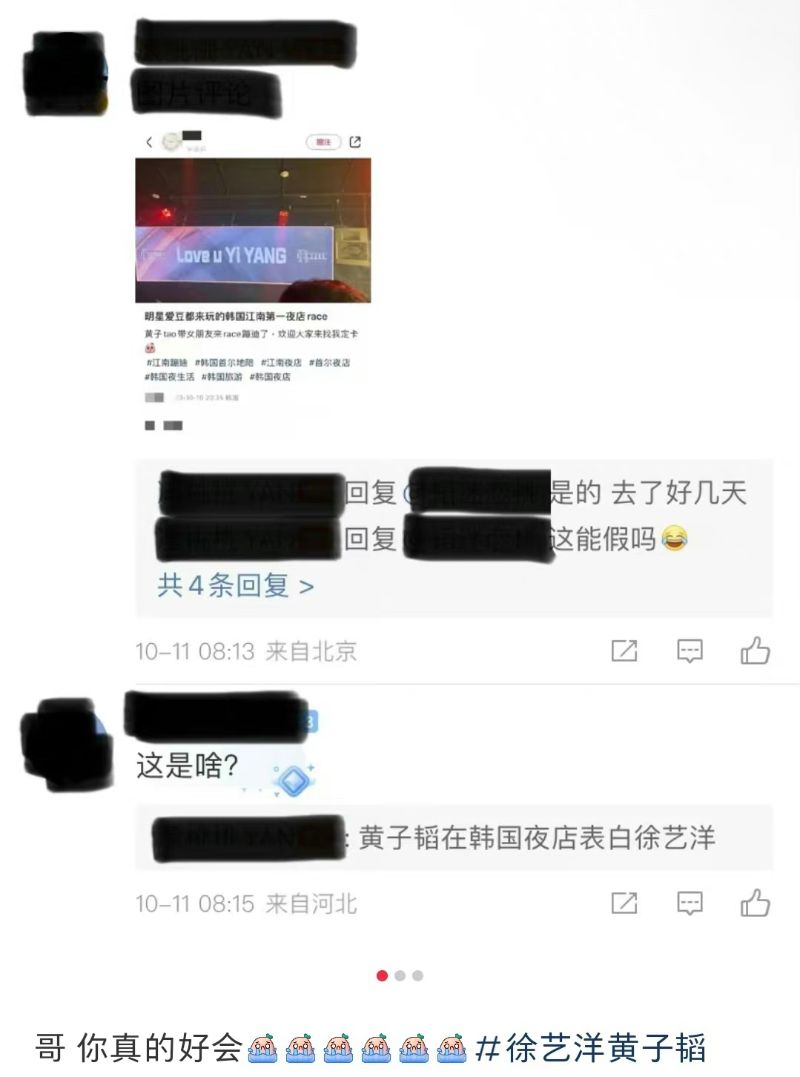 但。沒想到在國內沒官宣,一到國外就官宣去了啊???沒錯,11號微博熱搜榜第一名的熱搜詞,就是「黃子韜韓國夜店表白徐藝洋」👇