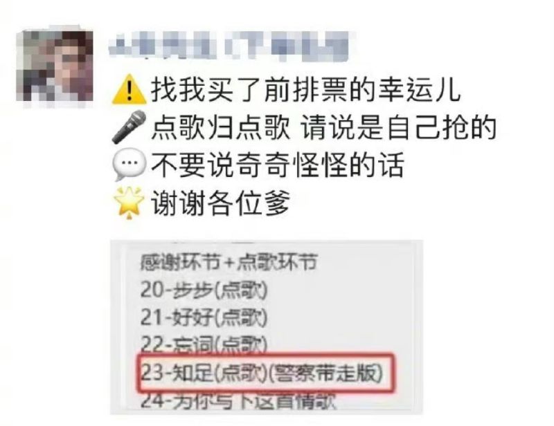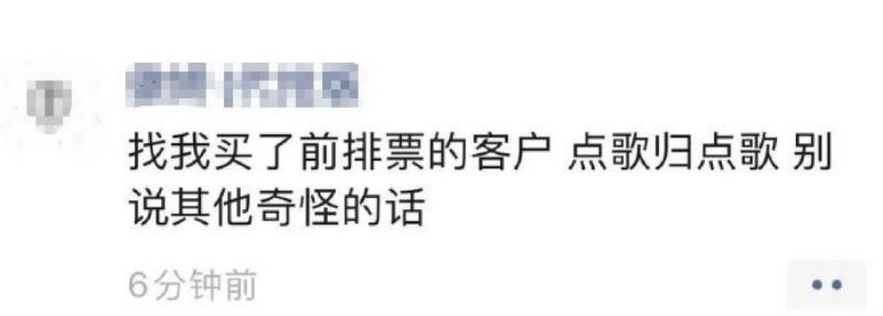 還有網友爆出了黃牛的朋友圈,讓買票的客戶「點歌歸點歌,別說其他奇怪的話」👇