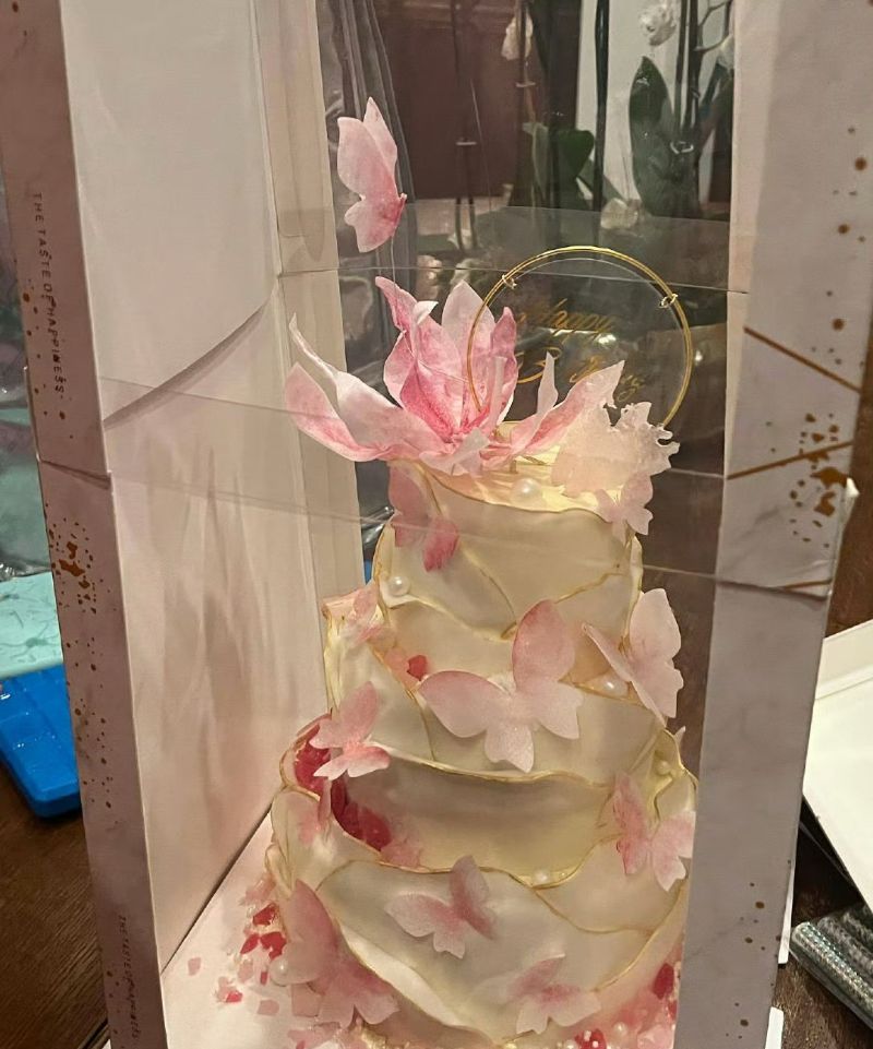 而目前在英國寄宿學校的王詩齡,也曬出了朋友們送的蛋糕,十分的好看👇