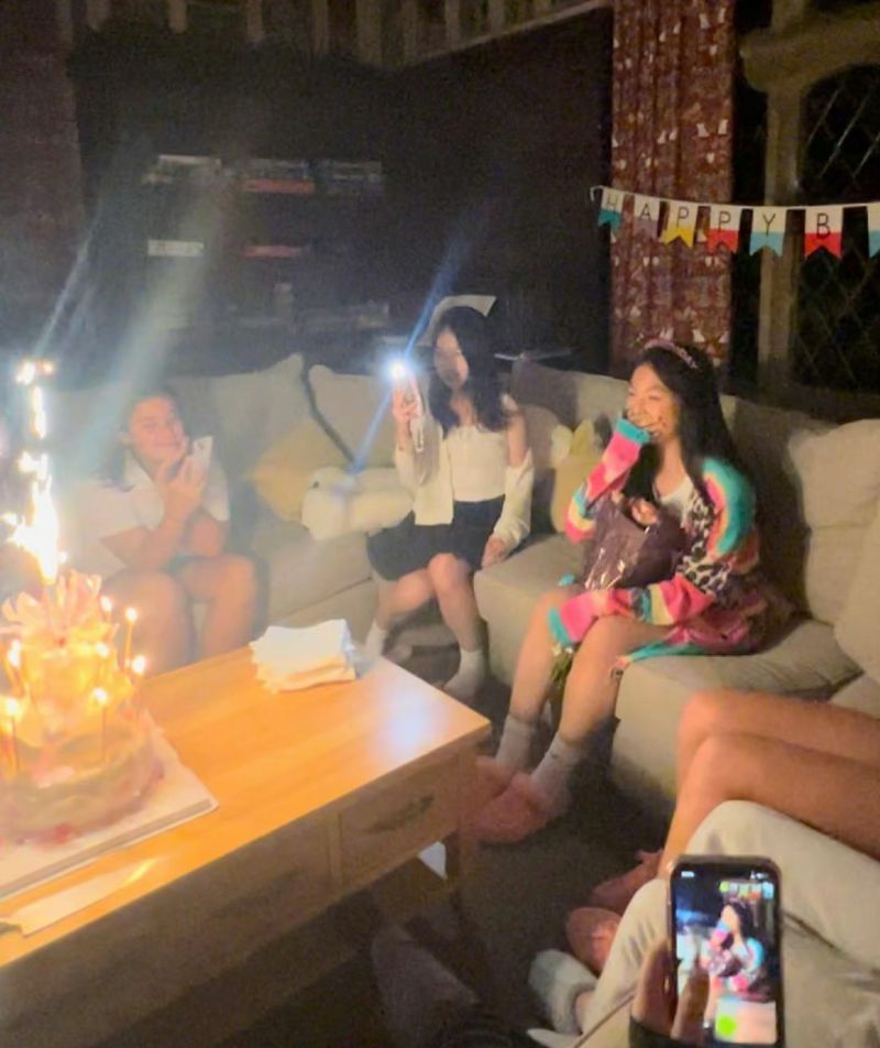 Angela也公開了朋友們為自己慶生的畫面,只見王詩齡坐在C位,看著點燃了蠟燭的蛋糕滿臉開心👇