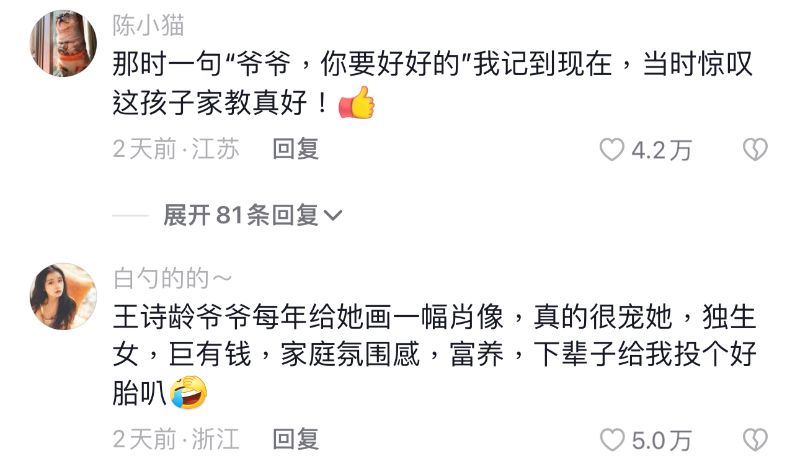 當時不少人熱評就是…王詩齡這輩子就是來享福的啊~