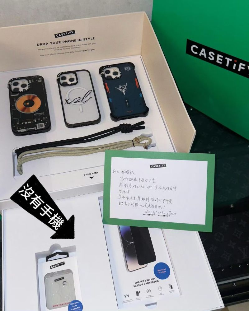 就是說,看了這麼多,這手機商業蠻公平公正的嘛~~~No No No,這就給你看對比,同樣是內娛藝人的邢昭林,也曬出了自己收到的Casetify禮盒👇