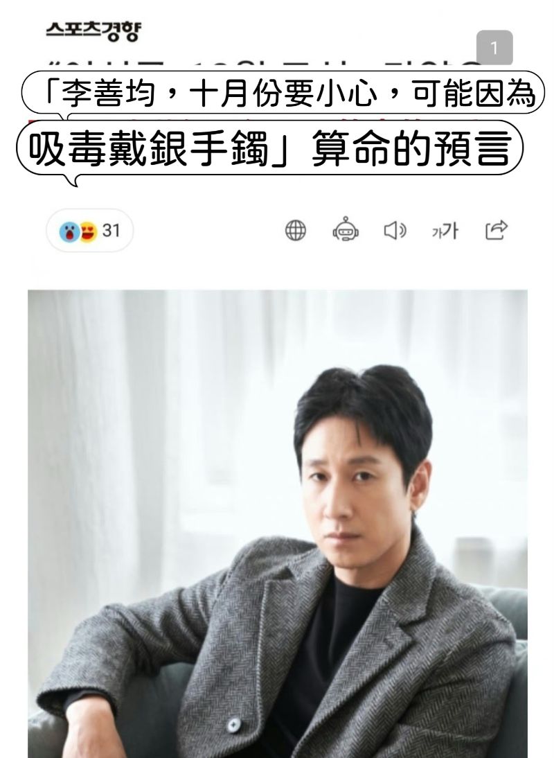 真的是李善均!!!是噠,韓國19號傳出一名頂級明星L某涉嫌吸毒,被稱是「第二個劉亞仁」,而且是會震驚忠武路的程度,引起了不少關注。當時網友根據媒體提供的線索,紛紛推測「L某」就是李善均!新聞看這篇👇