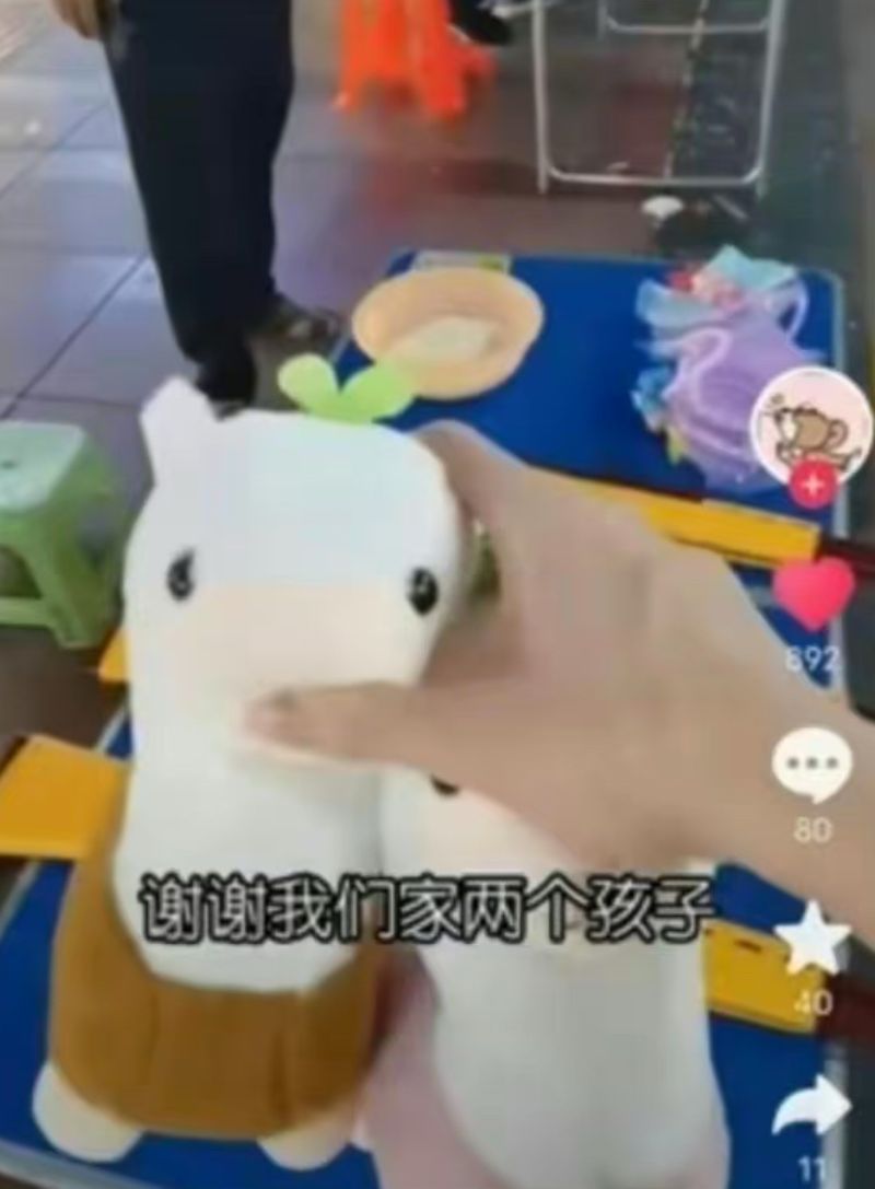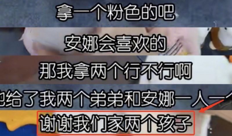 在視頻中,苗苗在和擺地攤的小商販要玩具的時候,說自己想要兩個,並強調稱因為家裡有兩個孩子:「謝謝,我們家兩個孩子」。