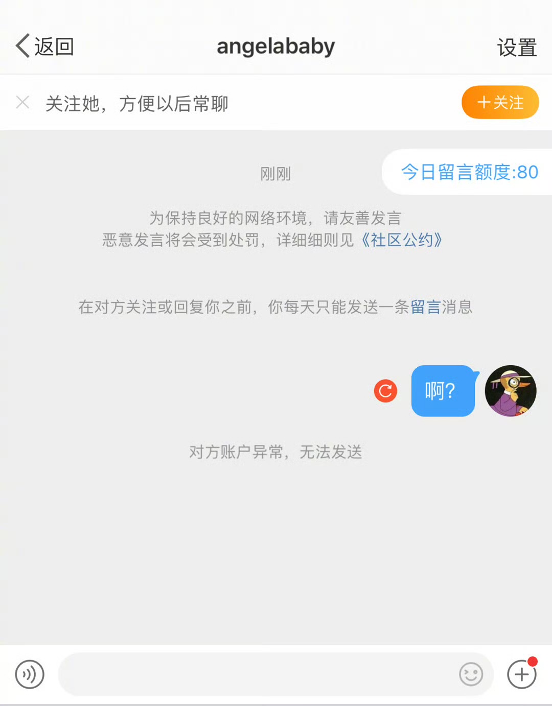 除此之外,被發現去觀看瘋馬秀的張嘉倪,以及「疑似」去觀秀但至今沒有回應的Angelababy,社交帳號也出現異常!一開始兩人的微博帳號無法發送訊息👇🏻
