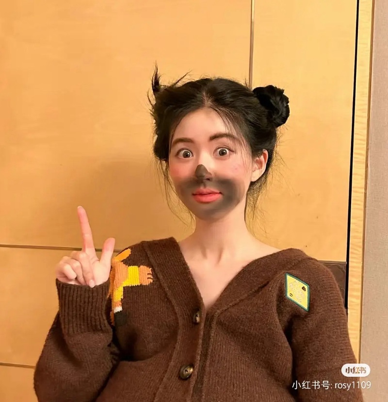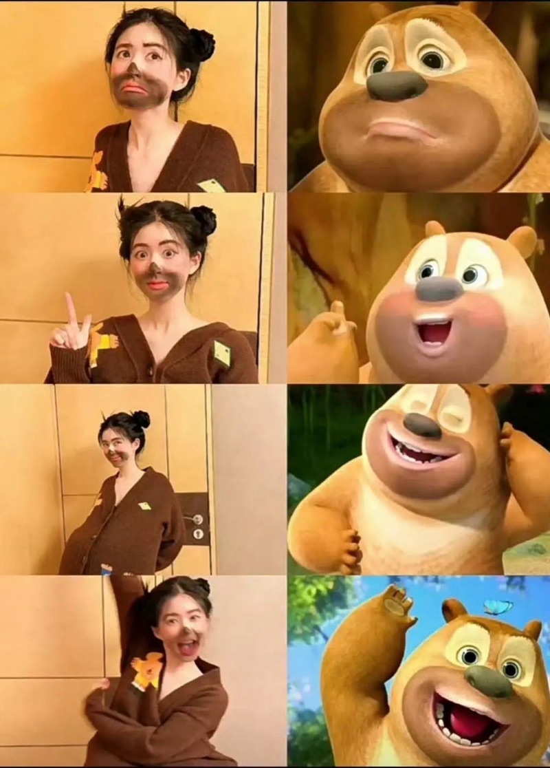 特別要點名趙露思的萬聖節裝扮,居然扮成了「熊出沒」裡面的熊二!
