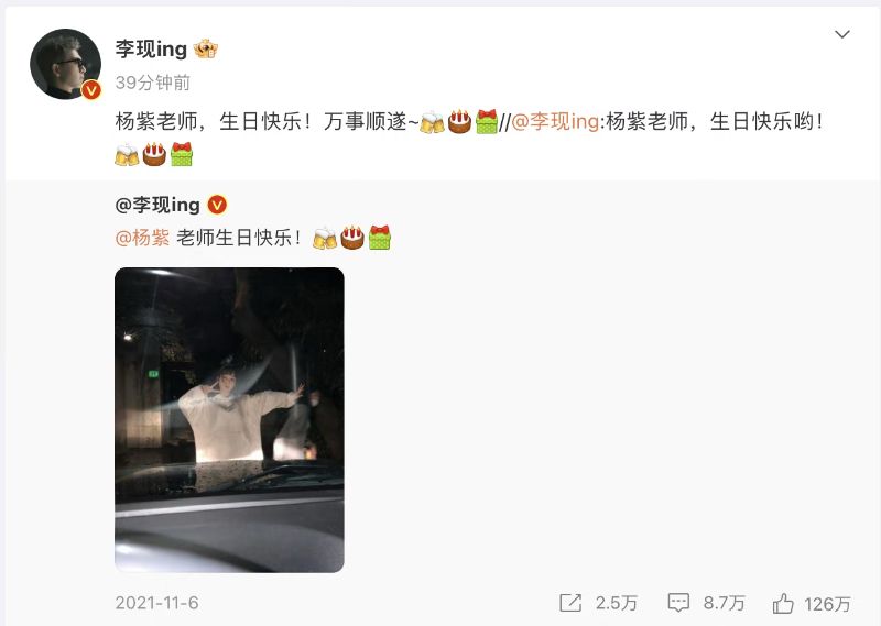 在6號剛度過31歲生日的楊紫,就收到了李現的祝福👇