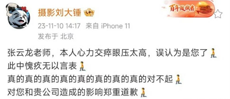 經典的來了~~~~在經紀公司闢謠之後一個小時,狗仔發文向張雲龍道歉,表示「本人心力交瘁眼壓太高,誤認為是您了」~並說了「真的x8對不起」(⊙o⊙)…表示…連追了3天都能認錯人,這狗仔…是認真的嗎???