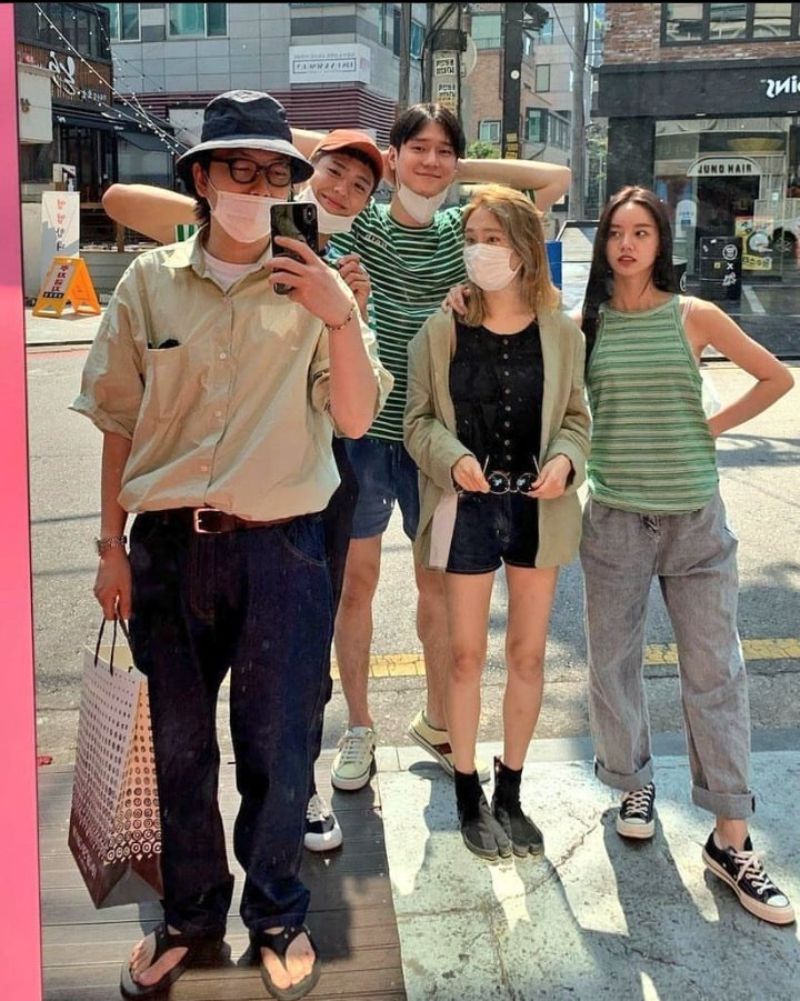 雖然兩人在戀愛期間十分低調,但時不時也會發糖,像每次雙門洞小夥伴聚餐時,柳俊烈雖然一般不出現在合照中👇