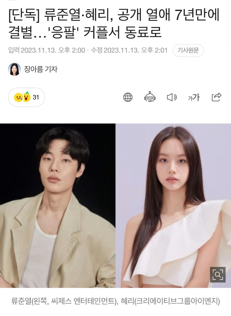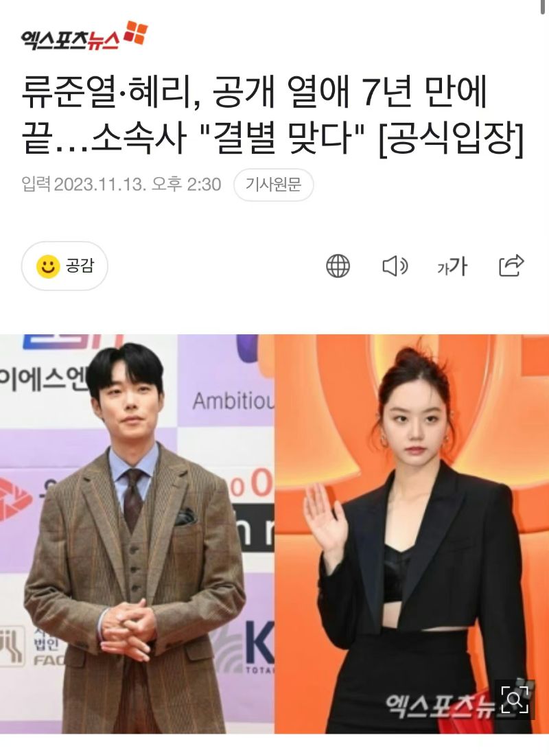 媽啊啊啊啊啊,為什麼時隔7年,再讓「狗善黨」心碎一次啊!是噠,根據韓媒,柳俊烈與李惠利經過長時間的考慮,最近選擇了分手,成為相互支持的同事。