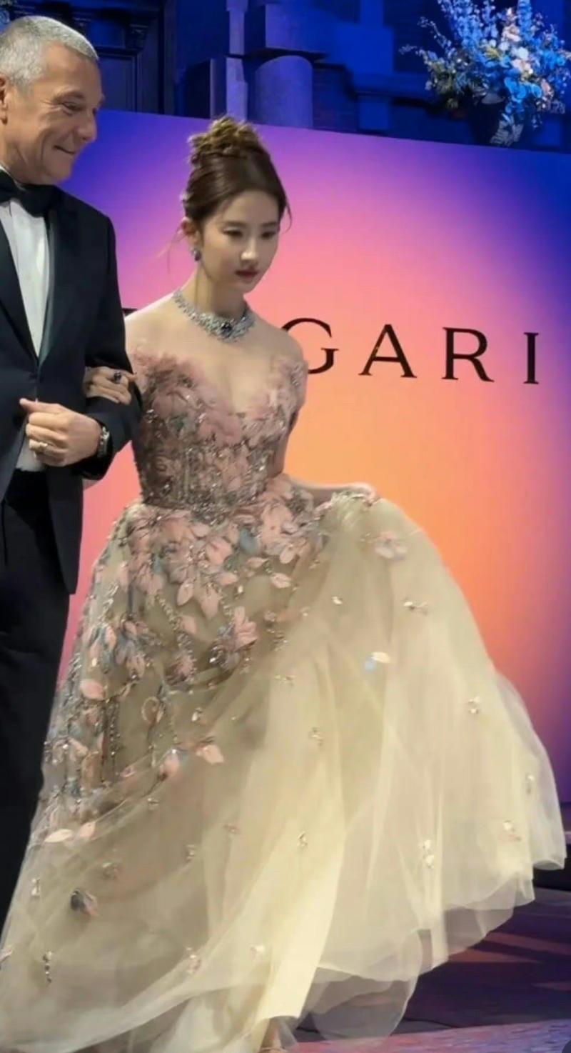 而在電視劇《玫瑰故事》殺青之後,劉亦菲一連兩晚出席了活動,先來看看活動方放出的活動圖,第一場是寶格麗代言活動👇