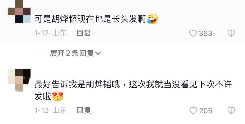 當時評論區熱評都在說的是…胡燁韜現在也是長髮啊!
