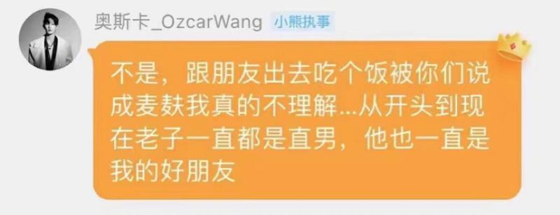 只不過沒想到幸福太短暫,奧斯卡隨後空降粉絲群闢謠,表示自己沒有在麥麩,並強調:「從開頭到現在老子一直都是直男,他也一直是我的好朋友!」