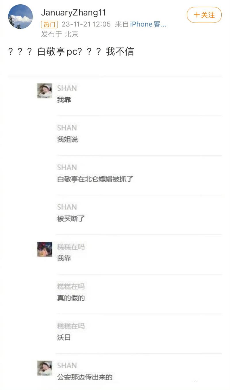 點開熱門話題一開,原來有網友爆料表示白敬亭因為嫖娼被捉,消息來自於警方👇