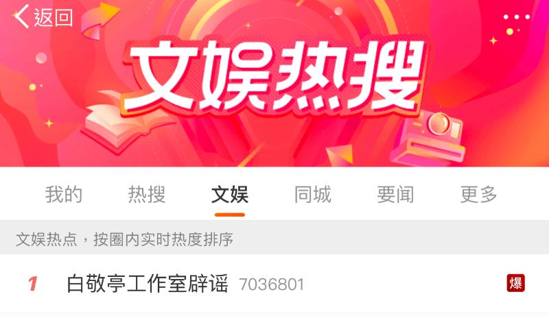 目前「白敬亭工作室闢謠」已經爆了微博熱搜榜👇