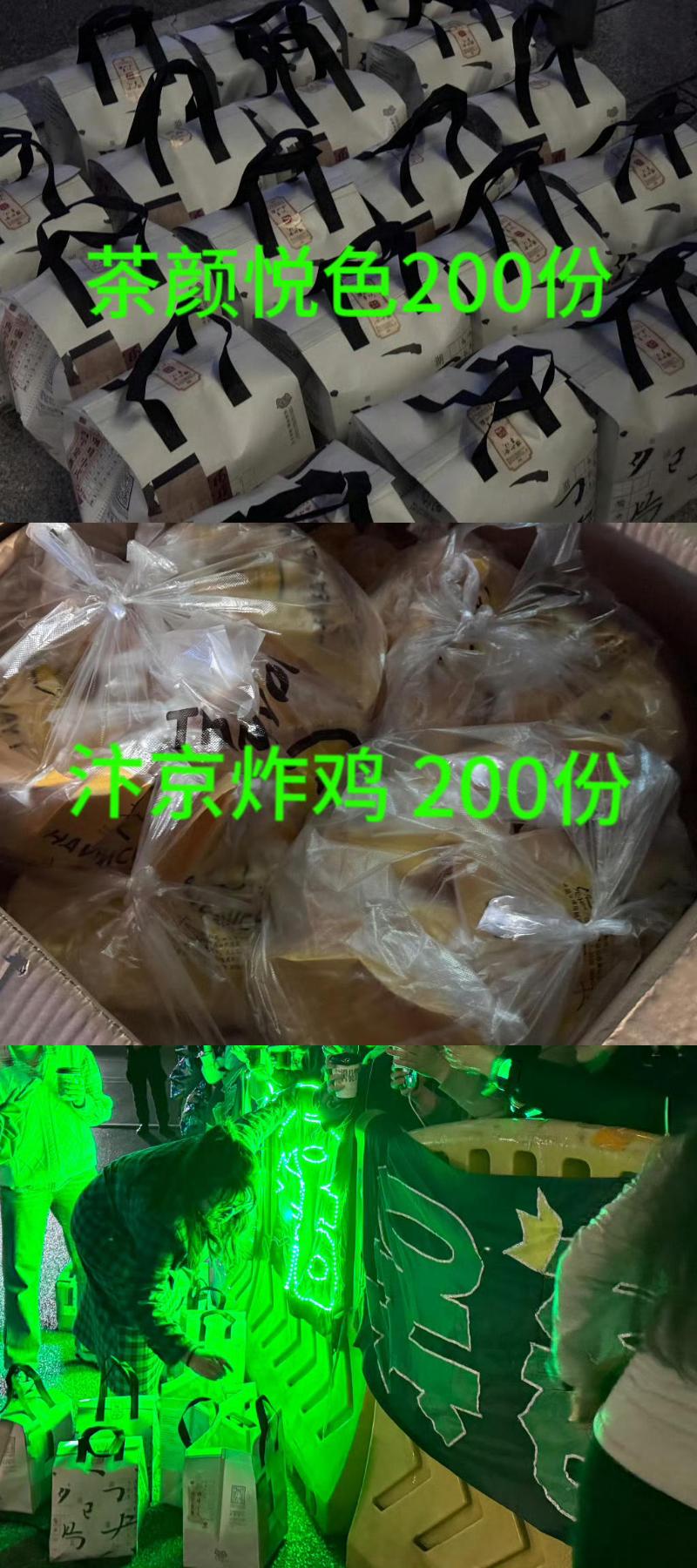 此外,還為現場的粉絲準備了逆應援,是噠,是長沙最出名的奶茶和炸雞啊!!!隔著熒幕都羨慕了!