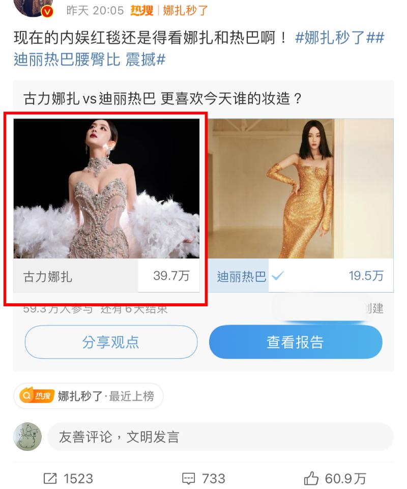 有自媒體發起了投票,引來超過60萬網友參與,當中娜扎獲得了近40萬的得票,只能說…實至名歸!