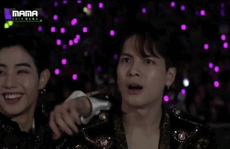 是說,這時忍不住要安排我們嘎嘎王嘉爾當年在MAMA典禮上,看見自家社長穿透明褲的出圈表情👇