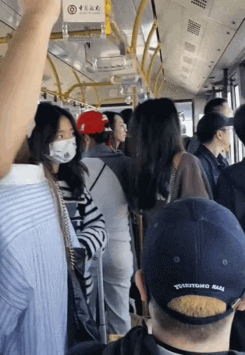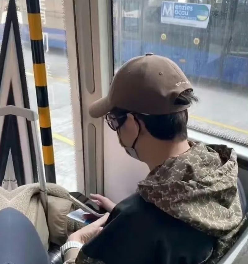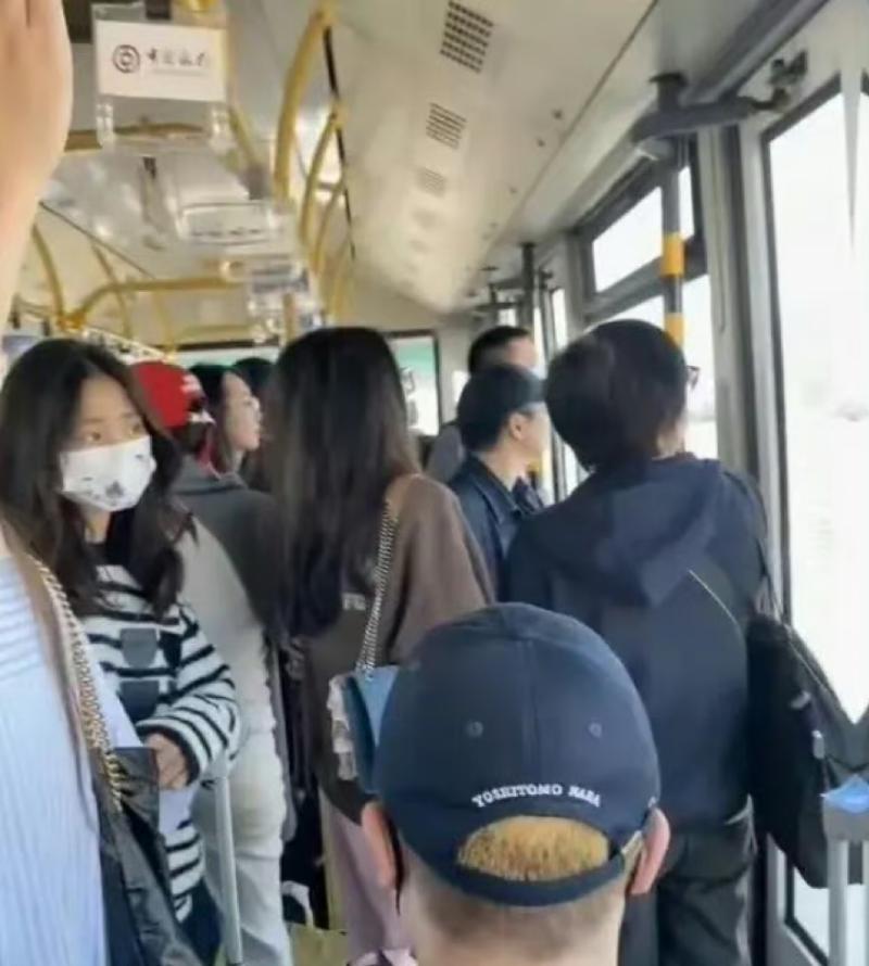 沒想到隨後黃多多和何炅也和其他乘客一樣,搭了機場接駁車,多多甚至一路站著,十分的低調。