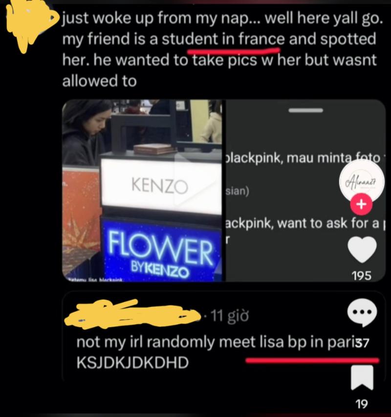 接下來就不時有網友分享,表示在法國巴黎偶遇LISA👇