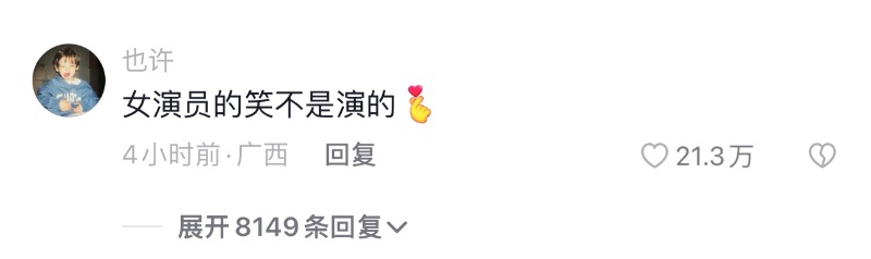 中國網友熱評也很踴躍,點讚最高的評論就是…「女演員的笑不是演的」🤣