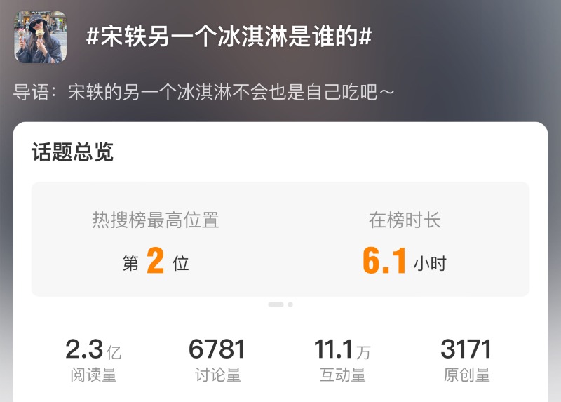 結果「宋軼另一個冰淇淋是誰的」立刻上了高位熱搜!