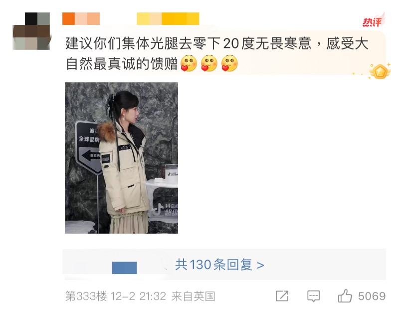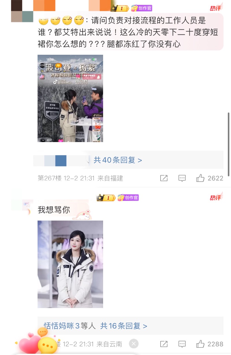 原因是直播當天,為了表現出品牌的抗寒力,特別安排了楊紫在零下二十度的小冰屋裡直播!