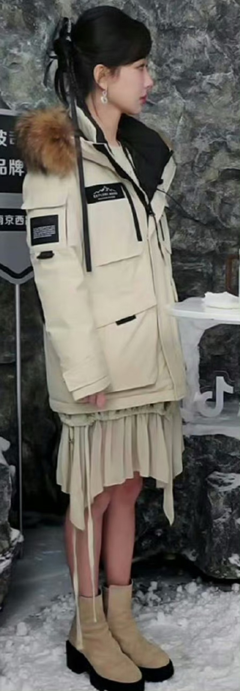 問題是,直播當天除了上身穿了抗寒外套,下半身工作室居然讓她只穿了小短裙⋯啊咧?