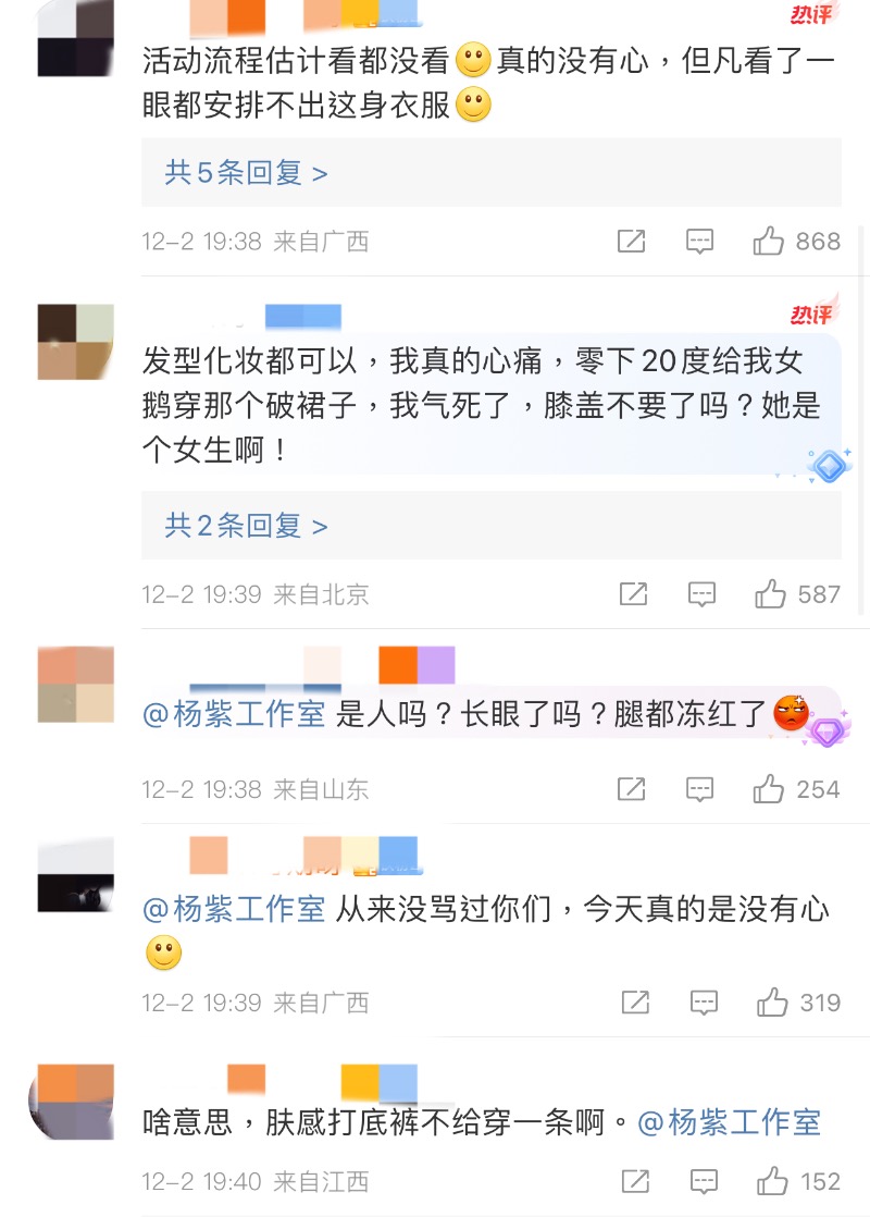 於是,楊紫的腿,在直播中肉眼可見的逐漸變紅紫,一看就是⋯凍傷了!