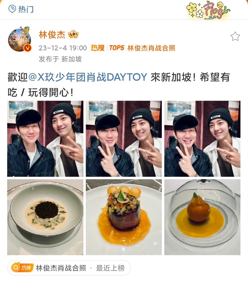 沒想到的是,鏡頭前這麼有氣場,私底下居然⋯這麼反差萌!沒錯,JJ林俊傑公開了和肖戰的合照,表示歡迎他來新加坡,並希望他有玩、吃得開心!