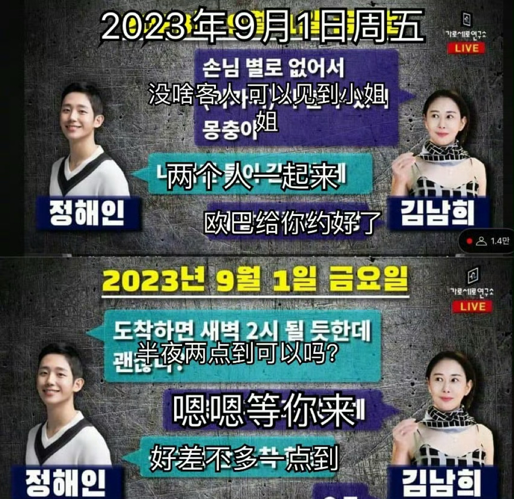 該博主曝光了疑似丁海寅和李善均情人,也就是夜店負責人在9月1日的聊天對話,當中提到自己會過去善地。對方還回應表示已經把小姐姐準備好。