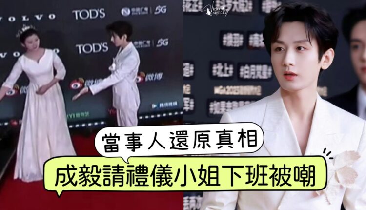 雖然但是,在引起熱議之後,該禮儀小姐留言回應,表示當時的真實情況,是成毅向自己確認拍照的站位,而不是讓自己下班啦!