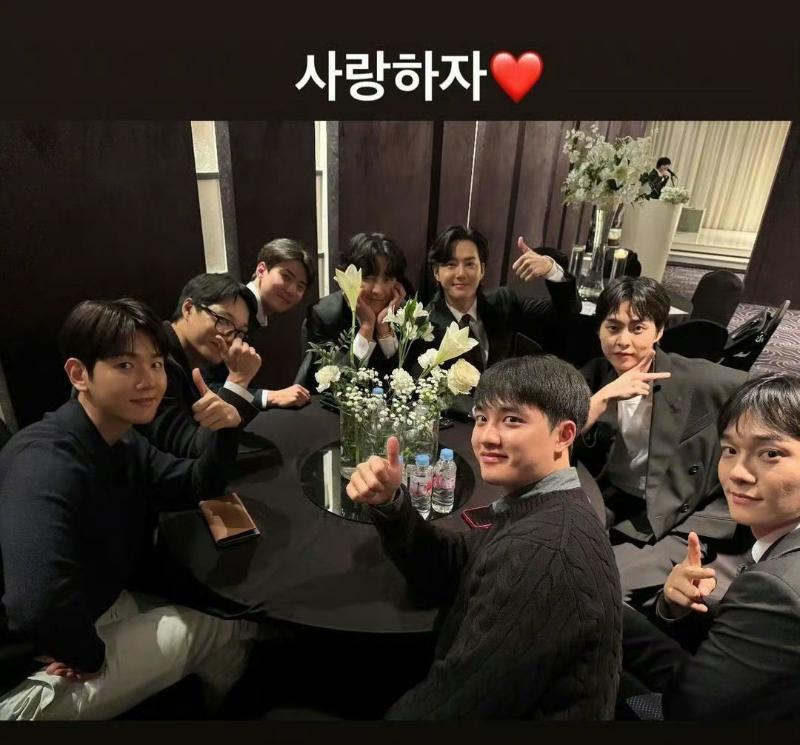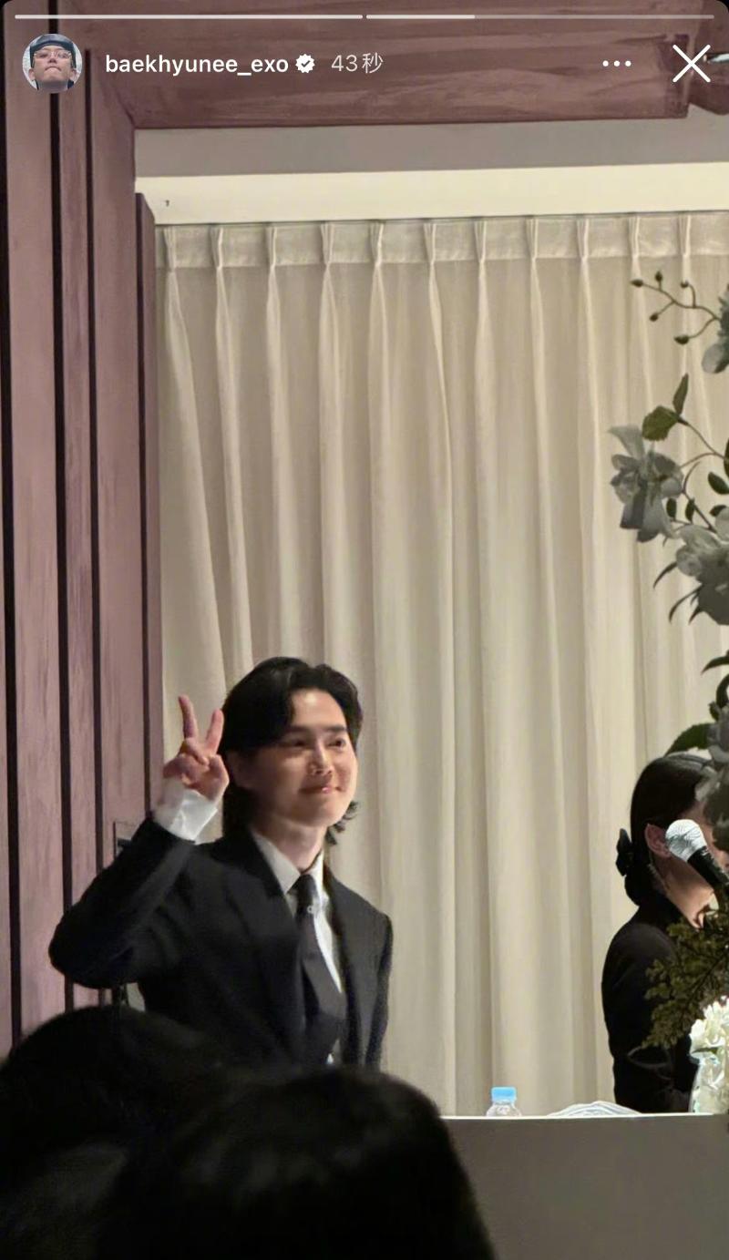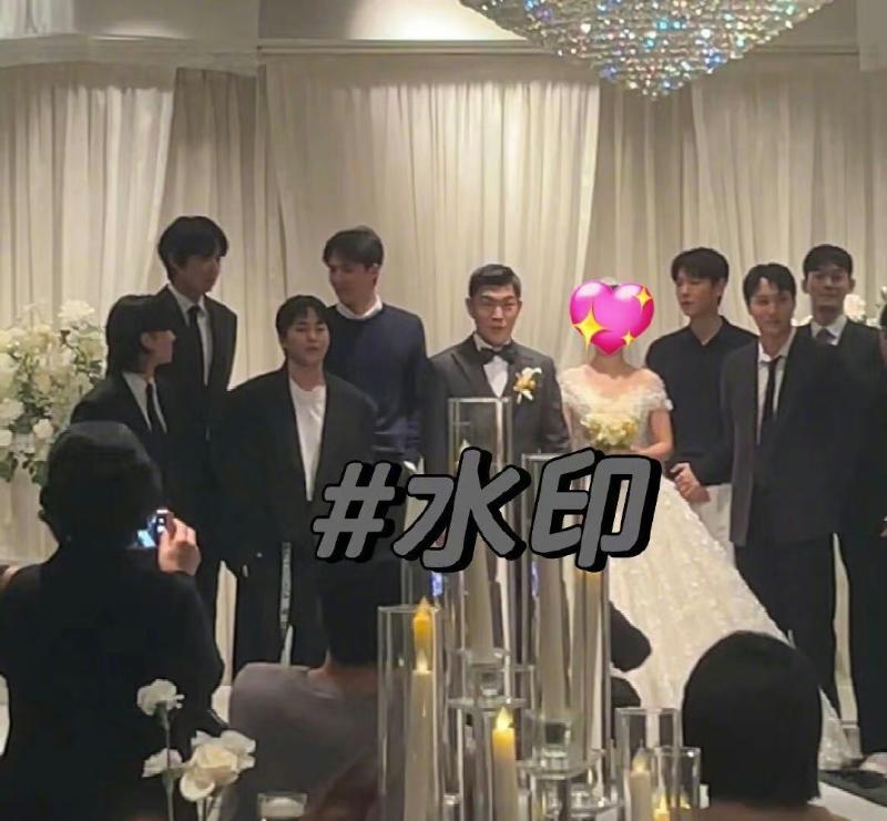 也來看看婚禮上成員們的照片,包括了目前正在服兵役的…KAI!